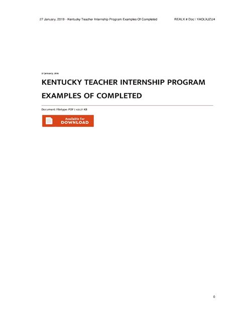 Read kentucky teacher internship program examples of completed Doc online is a convenient and frugal way to read kentucky teacher internship program examples of completed you love right from the comfort of your own home. Yes, there sites where you can get Doc "for free" but the ones listed below are clean from viruses and completely legal to use.